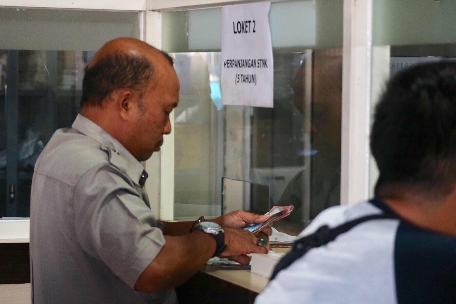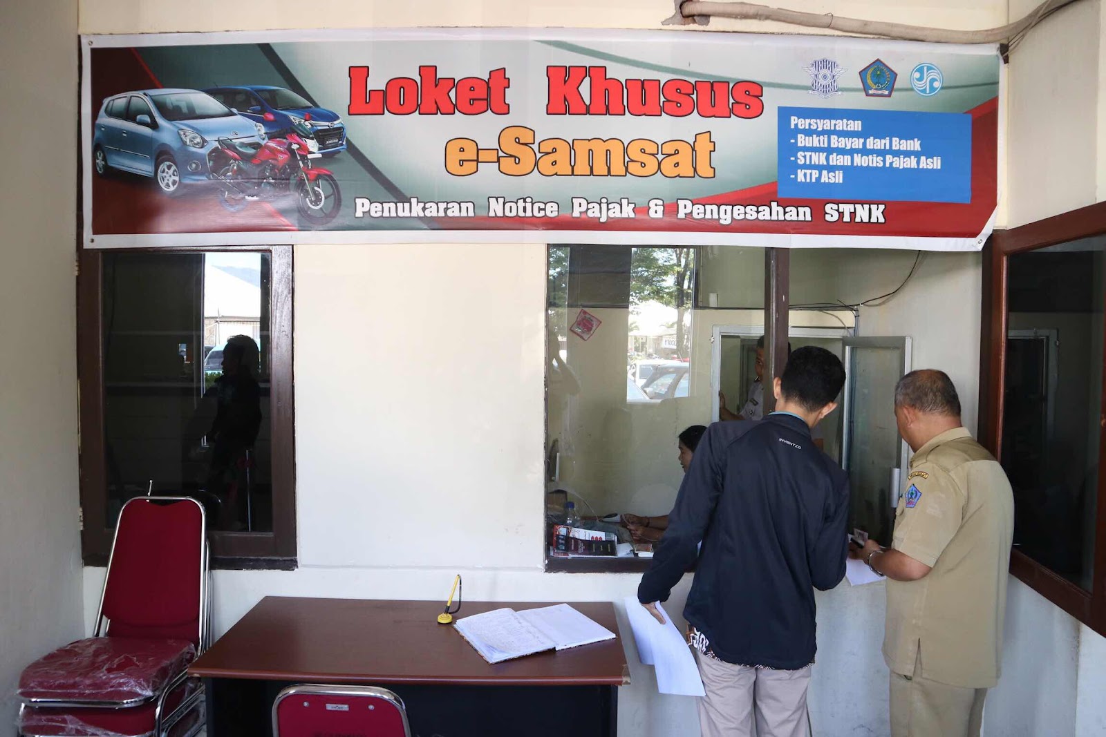 - Setelah menerima panggilan antrian, biaya tersebut dapat dibayarkan melalui kasir bank, dan dilanjutkan dengan pengambilan STNK baru, Notice Pajak dan TNKB di loket berikutnya.