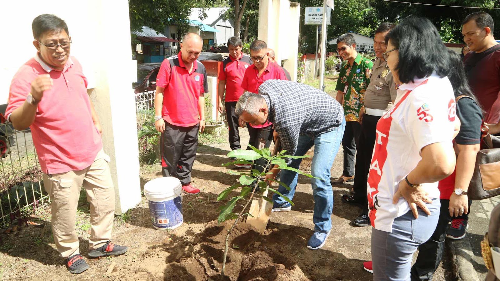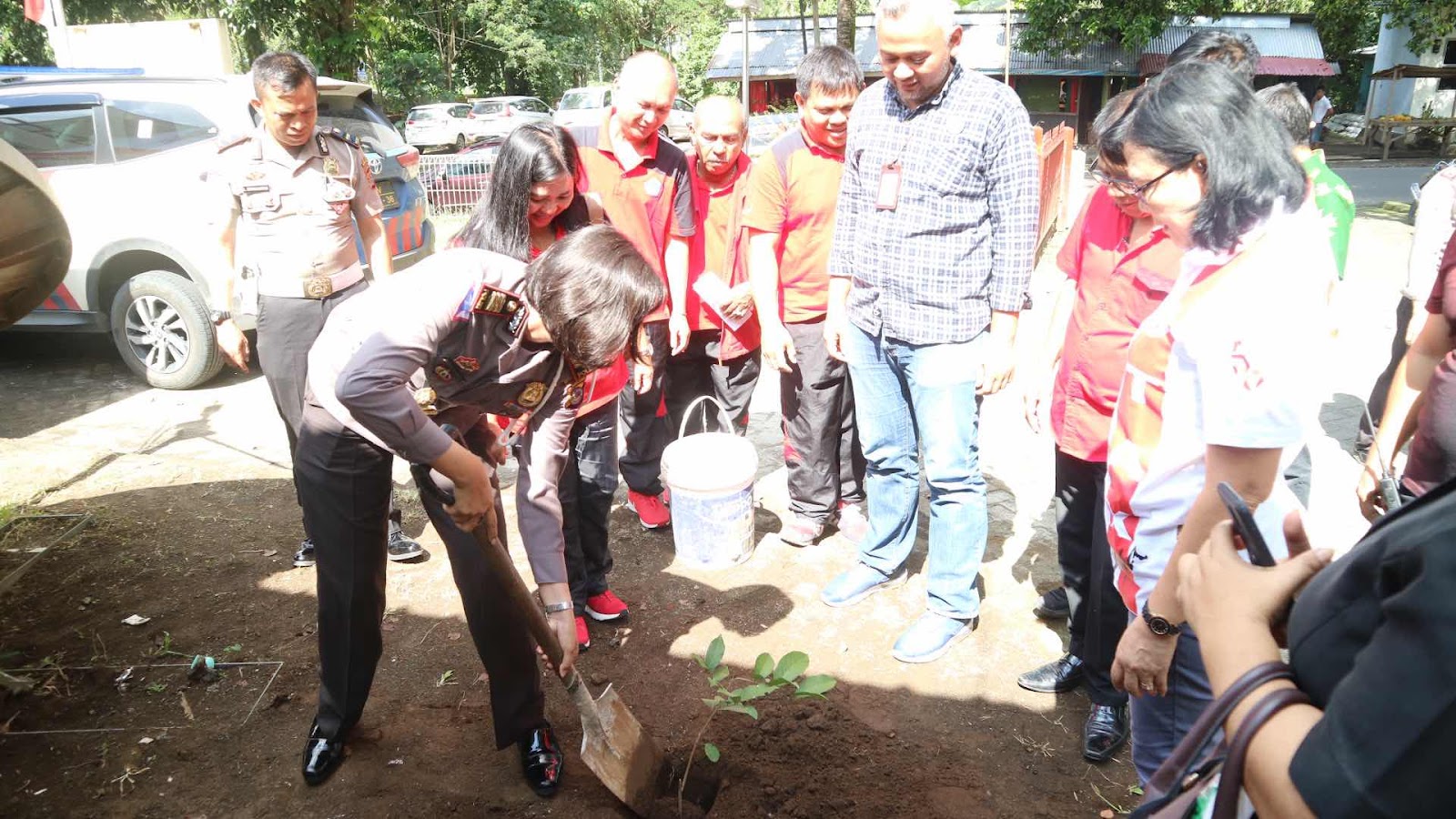 Kegiatan ini dilanjutkan dengan aksi penanaman bibit pohon di area halaman kantor Samsat Minut, untuk memberikan penhijauan pada lingkungan hidup. Hadir dalam acara tersebut Kepala PT. Jasa Raharja Cab. Sulawesi Utara, Hervanka Tri Dianto, Kasat Lantas Polres Minut, AKP. Renthauli Novita Pardede, SIK. (PTIP/Humas#ML)
